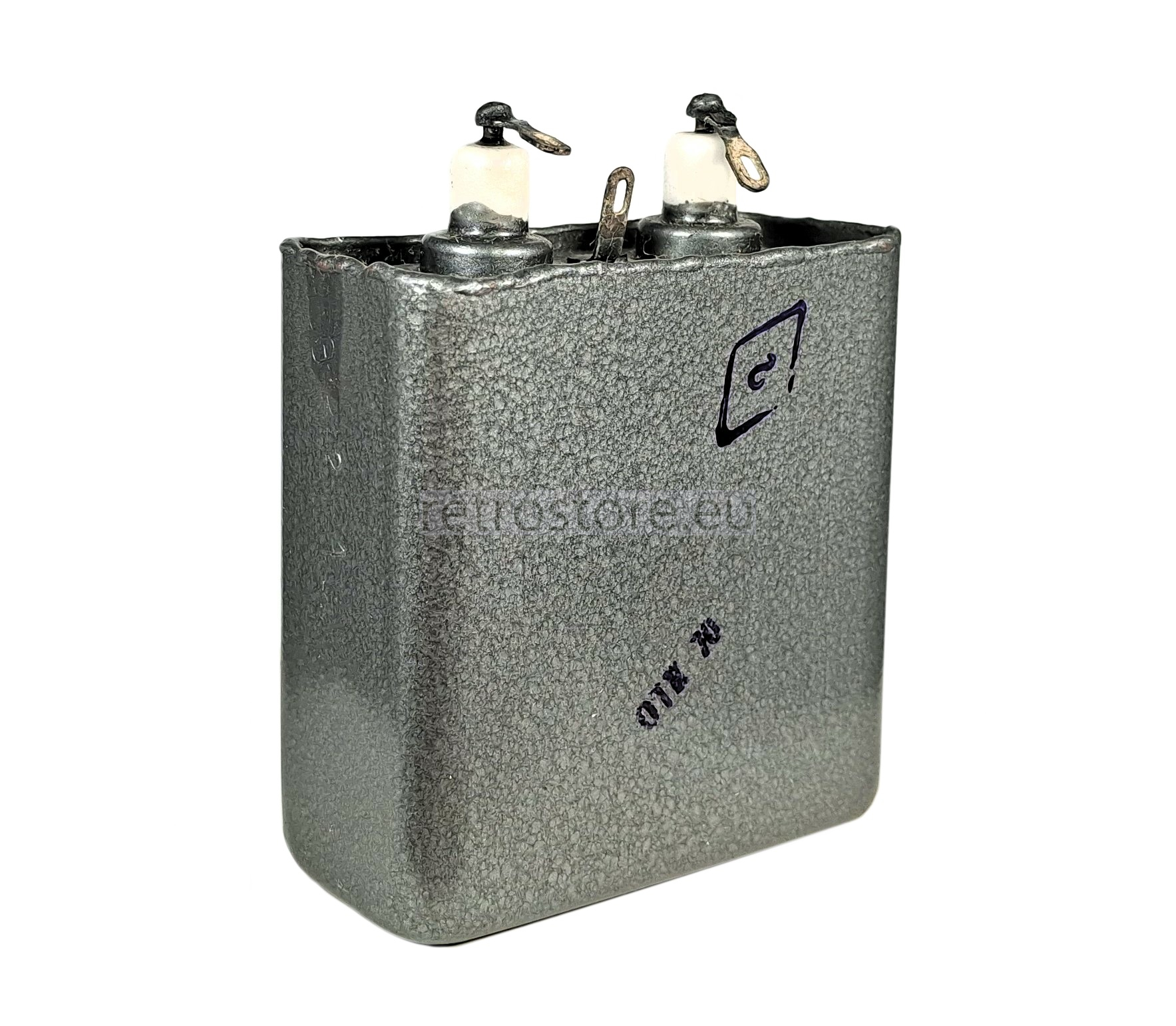Vintage quality high voltage PIO capacitor K41-1a (К41-1а), 0,1µF, 4kV, tolerance: ±10%. Approximate dimensions: 65x30x65(85) mm. Service life: not less than 5000 operating hours. Weight: approximately 320g. New old stock and tested. Year of production: 1983.