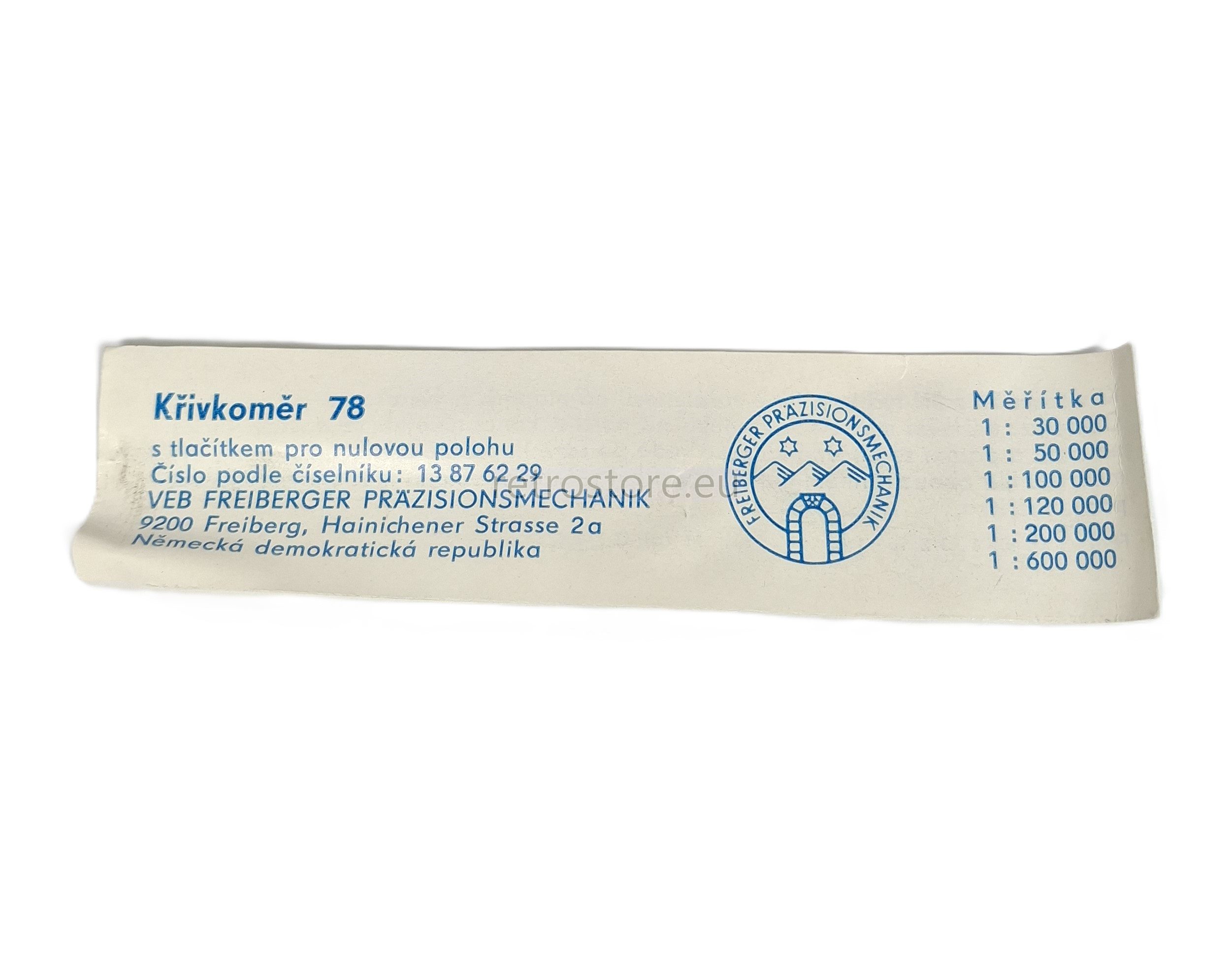 This vintage distance measuring unit was produced in Freiberg (DDR). It is usable directly for maps with following scales: 1:30 000, 1: 50 000, 1:100 000, 1: 120 000, 1: 200 000, 1: 600 000. Of course you can use it for maps with another scales too, but you need to make additional calculations. Longer time stored items, never used. Working condition, really nice shape. Due to longer storage the fixing glue on the dust protection covers, covering the measuring unit from both sides, is already exhaused, so it is unstable and may fall out on some of them. If that happens, you just need to add a very small amount of glue for plastic and it will hold you there for another decades. Zero button on the top of the handle is working, sometimes you need to push harder or several times to get the pointer back. If you will get annoyed of this, you can adjust it back easily with the small circle on the bottom of the device. Manufacturer: VEB Freiberger Präzisionsmechanik, NDR. Comes with original red slip pouch and label as pictured in the gallery.