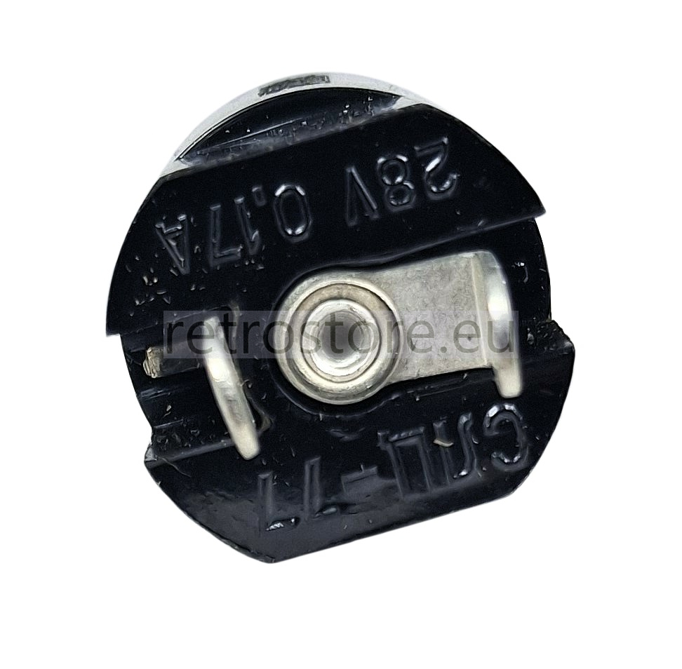 Vintage soviet aircraft indicator lamp holder SLC-77 (СЛЦ-77) without bulb. Filter color: green. Holder color: black. Designed for visual signaling to the crew about the operating modes or system status. Weight: approximately 20g (not more than 24g). Operating voltage: 28V. Operating current: 0,17A. Type of the suitable bulb: SM-28-4,8 (CM-28-4,8). Universal dimentions: not more than 21 x 63,3 mm. New old stock, directly from the old reserves (please look at the gallery).